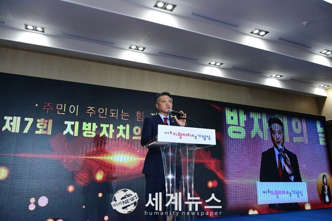 ▲ 30일 오후 세종시 지방자치회관 대회의실에서 열린 ‘제7회 지방자치의 날 기념식’에서 신원철 전국시·도의회의장협의회장(서울특별시의회 의장)이 지방의회 인사권 독립과 정책지원 전문인력 도입을 골자로 하는 ‘지방자치법 전부개정안’의 조속한 통과를 재차 요구했다. |