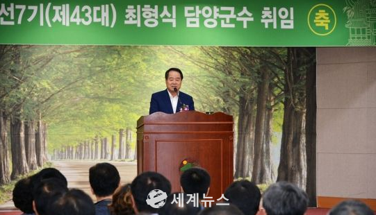 [세계뉴스] 한차수 기자 = 최형식 담양군수 취임식이 2일 군청 대회의실에서 열린 가운데 직원 정례조회와 함께 민선7기(제43대) 임기 시작을 알렸다.