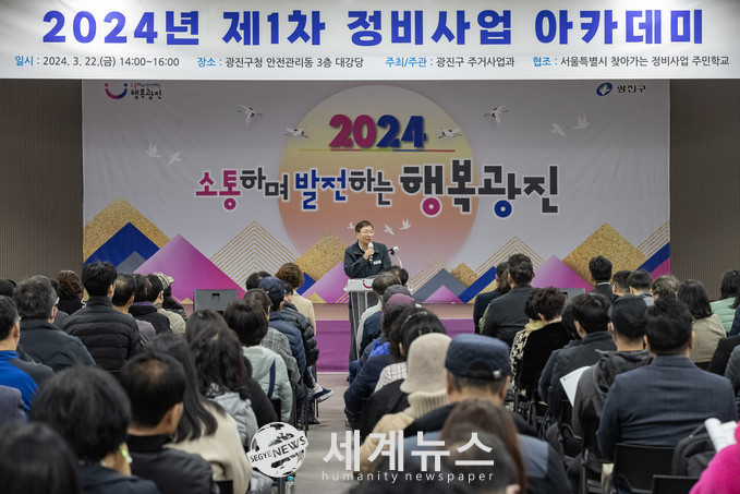 [세계뉴스 조홍식 기자] 서울 광진구(구청장 김경호)가 지난 22일 재건축, 재개발 관련 다양한 정비사업의 이해를 돕는 ‘제1차 정비사업 아카데미’를 개최했다.