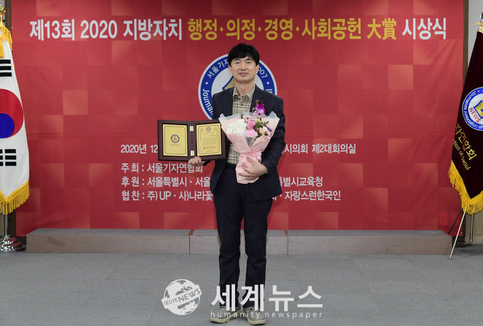 [세계뉴스 전승원 기자] 재단법인 지구힐링문화재단 김능기 총재가 10일 서울시의회 제2대회의실에서 개최된 ‘2020 지방자치 행정·의정·경영‧사회공헌대상’ 시상식에서 사회공헌대상을 수상하는 영예를 안았다.
