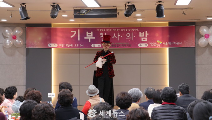 [세계뉴스 조홍식 기자] 서울에너지공사(사장 박진섭)는 지난12일 목동종합사회복지관(관장 유영덕)이 개최한 ‘기부천사의 밤’ 행사를 후원하고 마술 및 뮤지컬 등 다채로운 공연을 선보여 참석자들의 큰 호응을 얻었다.