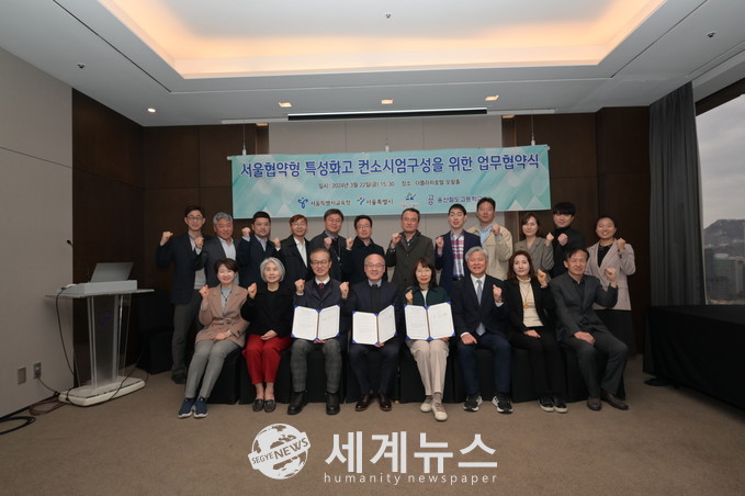 [세계뉴스 차성민 기자] 서울시교육청(교육감 조희연)은 올해 선정된 교육부‘2024 서울직업교육 혁신지구’사업 운영의 일환으로 22일 ‘서울협약형 특성화고 컨소시엄 구성을 위한 업무협약식’을 가졌다.