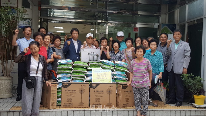행사에 참석한 어르신들은 선풍기, 밥솥과 쌀을 받아들고 이열치열(以熱治熱)의 훈훈함을 더해줬다.
