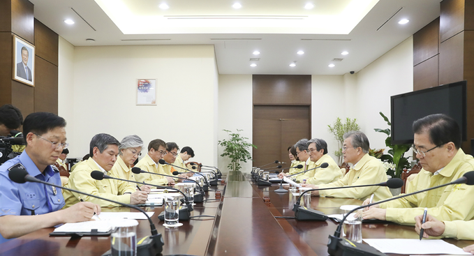 ▲ 문재인 대통령이 헝가리 부다페스트에서 침몰한 유람선 사건과 관련, 30일 오전 11시45분 관계부처 장관 등과 긴급대책회의를 개최하고 있다. 이 자리에는 국가안보실장, 외교부 장관, 국방부 장관, 행안부 차관, 국정원장, 해경청장, 소방청 서울본부장 등이 참석했다. |