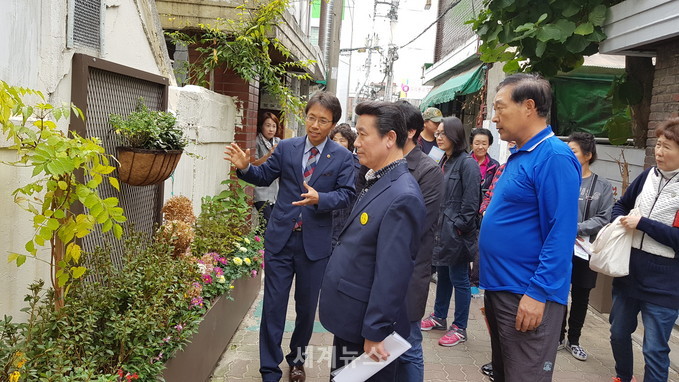 ▲ 26일 김광수 서울시의원이 골목길 사업 준공식에 참석해 지역현안인 골목길 가꾸기 사업에 대해 설명을 하고 있다. (구)상계2동 주민자치센터 앞 골목길(상계로 23길 일대)은 160m, 580㎡를 가꾸는 사업으로 '사랑이 꽃피는 길, 희망이 싹트는 길, 풍요가 넘치는 길' 골목길 3곳을 지정해 조성하고 있다. © 세계뉴스 |