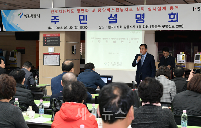 이 자리는 주민의 숙원사업이었던 천호지하차도 (4개차선, 폭원16m×총연장355m 구간) 평면화 사업의 실시설계(안)을 주민에게 공개하기 위해 마련됐다.