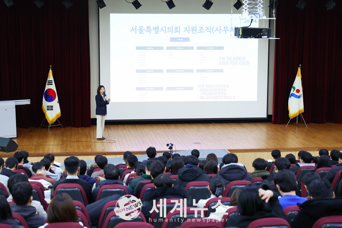 [세계뉴스 전승원 기자] 최호정 서울특별시의회 의장은 14일 서울시인재개발원에서 7~9급 신규 공무원 330여 명을 대상으로 소통 강연을 했다.