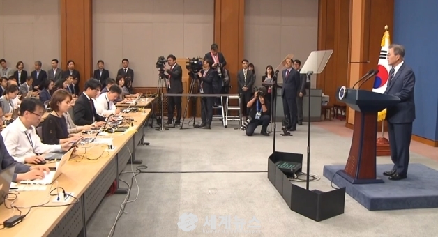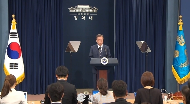 [세계뉴스 탁병훈 기자] 문재인 대통령은 10일 오전 11시 청와대 춘추관에서 취임 3주년 대국민연설을 했다. 이어 문 대통령은 청와대 출입기자들과 질의응답 시간도 가졌다.