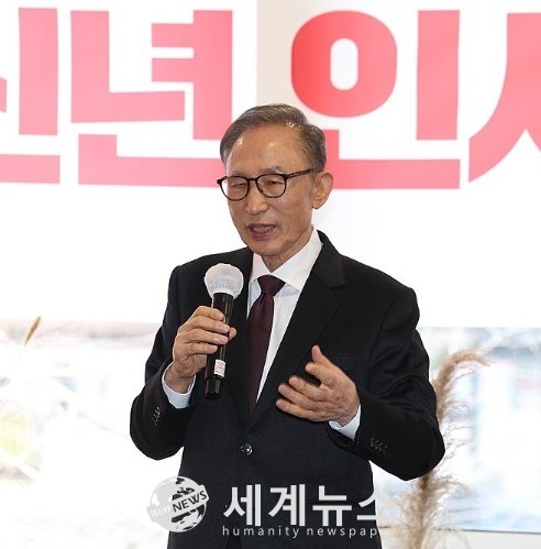 ▲ 2일 이명박 전 대통령이 서울시의회 국민의힘 의원들과 신년 인사회에서 인사말하고 있다. |