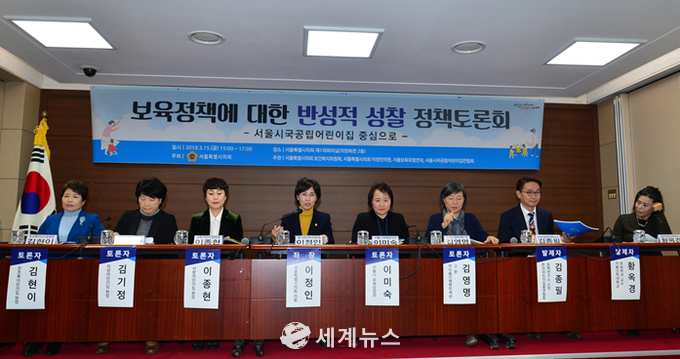 [세계뉴스] 정서영 기자 = 서울시의회 보건복지위원회 이정인 의원(더불어민주당, 송파5)은 지난 15일 의원회관 제1대회의실에서 ‘국공립어린이집 보육정책에 대한 반성적 성찰 정책토론회’를 주관하고 좌장을 맡았다.