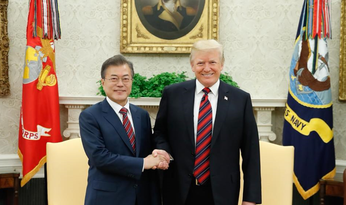 ▲ 문재인 대통령과 미국 트럼프 대통령의 정상간 단독회담이 백악관 오벌 오피스에서 열렸다. (사진=청와대 제공) |