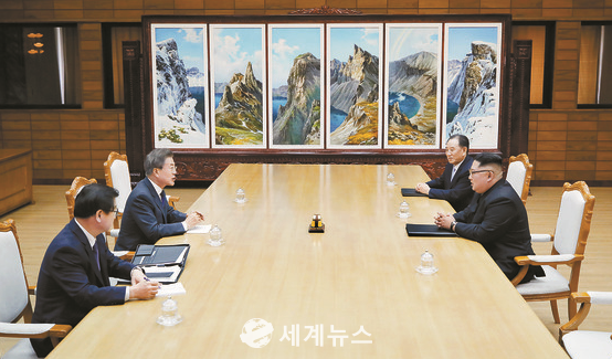 [세계뉴스] 탁병훈 기자 = 문재인 대통령과 김정은 국무위원장이 두 번째 남북정상회담을 판문점 북측지역 통일각에서 26일 개최했다.