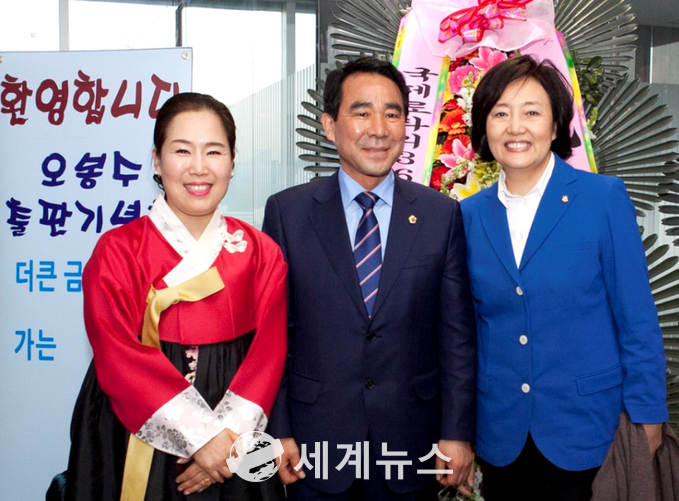 ▲ 서울 금천구청 12층 대강당에서 6일 오후 오봉수 서울시의원의 ‘더 큰 금천으로 가는 길’ 출판 기념회가 열렸다. (왼쪽부터) 오봉수 의원 부인인 김현주씨, 오봉수 시의원, 박영선 국회의원. © 세계뉴스 |