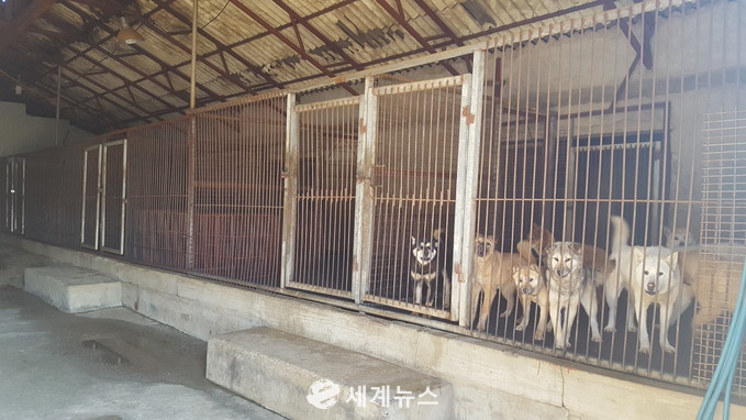 | ▲ 개 도축사업장 내에 설치된 사육시설 |