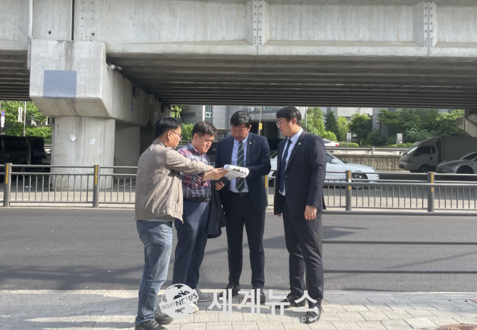 ▲ 박승진 서울시의원 중랑역 고가하부공간 현장을 둘러보며 시민생활공간으로 활용 방안을 모색하고 있다. |