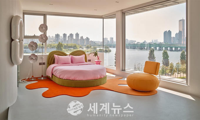 19일 서울시는 한강대교 ‘직녀카페’를 전망호텔(용산구 양녕로 495)로 전환해 오는 7월 16일 정식 개관한다고 밝혔다. 144.13㎡ 면적의 호텔에는 최대 4명까지 입실할 수 있다. 침대 옆 통창 2개에 거실에는 벽면과 천장 등 3개의 창문이 있다. 욕실에도 1개의 창문이 있어 객실 내부 어디서나 한강과 노들섬, 여의도, 63빌딩 등 풍경을 감상할 수 있다.