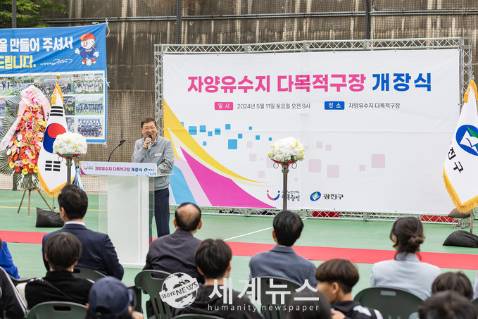 [세계뉴스 김광중 기자] 서울 광진구(구청장 김경호)가 자양빗물펌프장 유휴지를 생활체육 시설 ‘자양유수지 다목적구장’으로 새롭게 단장했다.