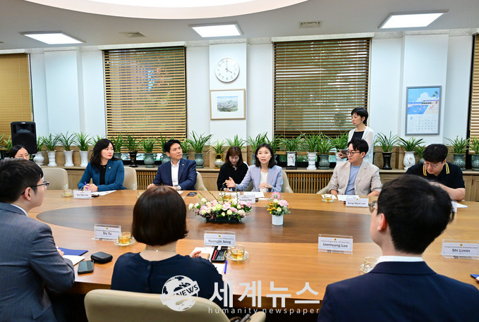 [세계뉴스 윤소라 기자] 최호정 서울특별시의회 의장은 26일 미 아시아재단이 주관하는 ‘2024 동북아시아 청년 교류 프로그램’에 참가한 한‧중‧일, 몽골 청년 대표단을 접견했다.