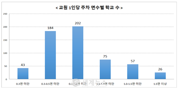 교원 1인당 주차 면수는 0.66면, 0.5면 미만 학교 비율도 37.9%