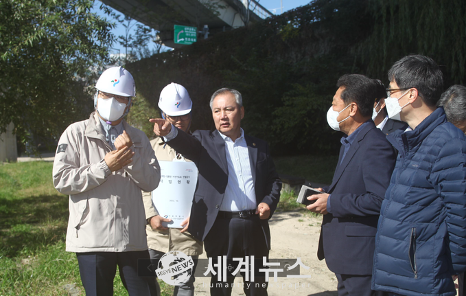 [세계뉴스 윤소라 기자] 서울특별시의회 교통위원회 이병윤 부위원장(국민의힘·동대문구 제1선거구)은 동대문구 정릉천 이용주민들의 오랜 숙원사업이였던 청계천과 정릉천을 직접연결하는 자전거도로 교량설치 공사가 진행중인 청계천과 정릉천 합류부의 “청계천~정릉천 자전거길 연결공사” 현장을 지난 20일 방문했다.
