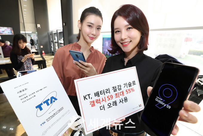 KT는 ICT 표준화 및 시험인증단체인 한국정보통신기술협회(회장 박재문, TTA) 시험에서 삼성 프리미엄 스마트폰인 갤럭시S9 모델로 배터리 절감 효과를 테스트한 결과 데이터 이용시간이 최대 55% 증가한 것으로 확인됐다. 이에 따라 KT의 LTE 가입자라면 별도의 단말 업그레이드 과정 없이 데이터 배터리 사용시간 증대 효과를 누릴 수 있게 됐다.