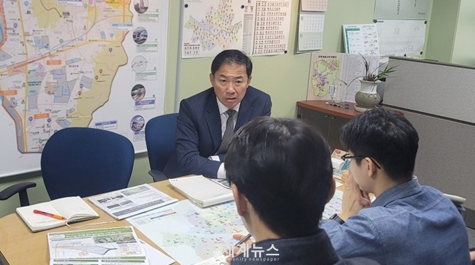 | ▲ 박승진 서울시의원이 신내차량기지 이전 관련하여 논의를 하고 있다. |