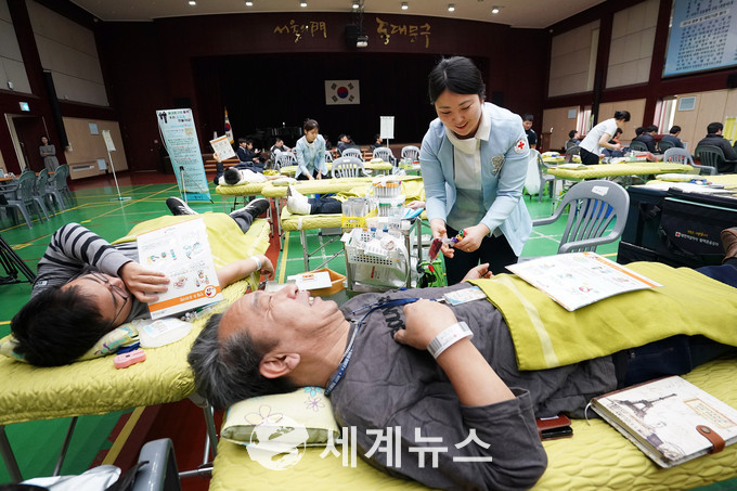 [세계뉴스] 조홍식 기자 = 동대문구가 대한적십자사 동부혈액원 주관으로 ‘2019년 직원 단체헌혈’을 실시했다.