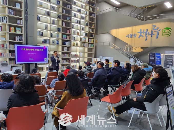 이번 행사는 '기후 환경 생태 그리고 우리'라는 책의 저자인 이보균 교수가 진행 하였으며, 구민 및 임직원 60여 명의 열렬한 관심 속에 환경 문제와 기후 변화에 대한 심층적인 이해와 인식을 환기시키고 새로운 시각과 통찰을 제공하는 의미 있는 자리였다.