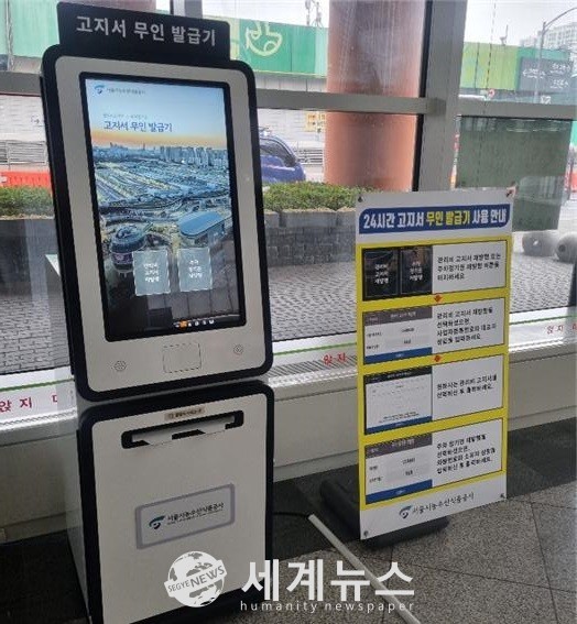 전국 49개 도매시장(공영 33개, 일반 16개) 최초로, 도입하는 24시간 고지서 무인발급 시스템 가동으로, 분실·훼손 등 걱정 없이 신속한 재발급이 가능해져, 관리비‧주차료 납부를 하는 고객 편의 향상에 크게 기여할 전망이다.