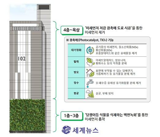 공사가 발표한 미세먼지 저감대책에 따르면 SH공사가 시공한 아파트단지 측벽의 하층부는 벽면녹화를 실시하고, 상층부에는 선진국형 미세먼지 저감 기술인 광촉매 기술을 이용한 광촉매 도료를 시공하여 미세먼지 저감에 나선다.