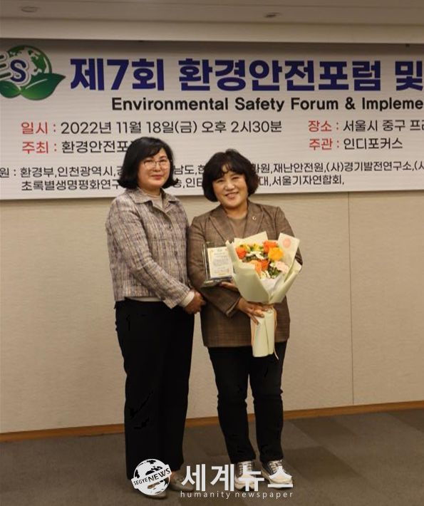 [세계뉴스 정서영 기자] 환경을 우선으로 생각하는 서울시의회 환경수자원위원회 봉양순 위원장(더불어민주당, 노원3)이 18일 개최된 ‘제7회 환경안전실천대상 시상식’에서 환경대상을 수상했다.