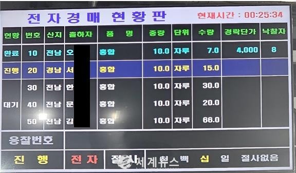 강민규 공사 유통본부장은 “그동안 경매 진행 시 경매사 노트북 및 전광판에 응찰자 번호가 표시되어 특정 경매 참여자에게 편중 낙찰, 저가 낙찰 등 부정 경매 오해 소지가 있었지만, ‘응찰자 가리기’ 경매를 시행함으로써 보다 공정한 경매로 도약하는 계기가 될 것으로 기대한다.”고 전했다.
