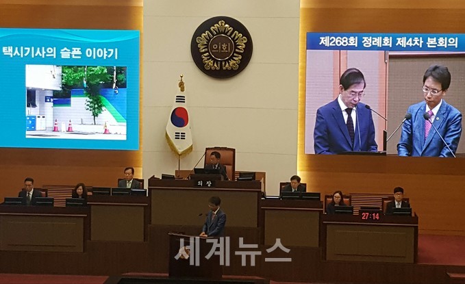 [서울=세계뉴스] 이남우 기자 = 서울시의회 환경수자원위원회에서 활동하고 있는 김광수 의원(국민의당, 노원5)은 15일 제 268회 정례회 본회의장에서 박원순 시장에게 “택시기사의 슬픈 이야기!”라는 제목으로 시정질문을 했다.