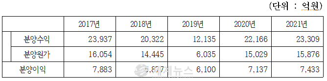 ▲ 최근 5년간 연도별 분양이익 추이 |