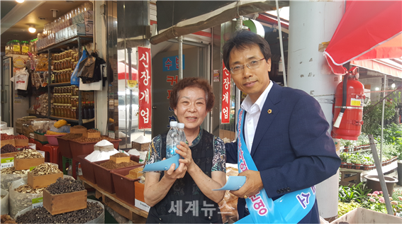 [세계뉴스] 전승원 기자 = 서울시의회 김광수 의원(노원, 국민의당 대표)은 28일 아리수(서울 수돗물) 홍보를 위해 상계동 중앙시장에서 상인들과 상계동 주민들을 찾아 동분서주했다.
