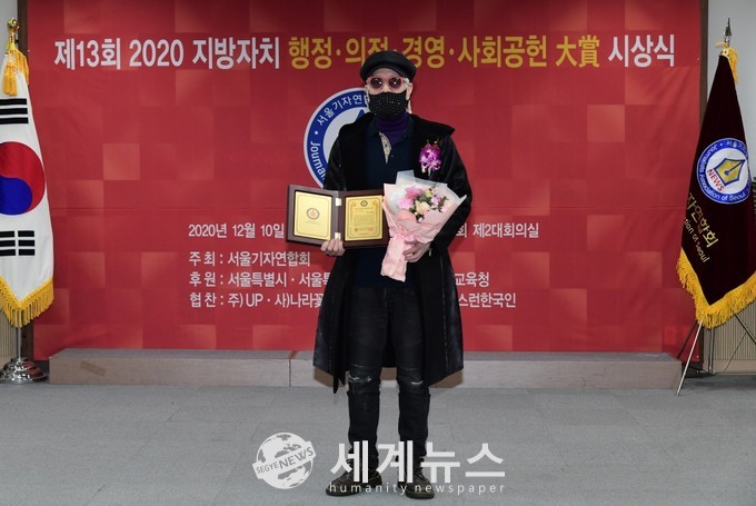 | ▲ 박현웅 음악감독은 10일 서울시의회 제2대회의실에서 개최된 ‘2020 지방자치 행정·의정·경영‧사회공헌대상’ 시상식에서 사회공헌대상을 수상했다. (사진=기자단 제공) |