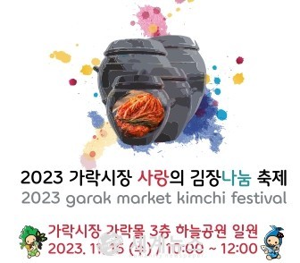 ▲ 15일 오전 10시 가락몰 3층 하늘공원에서 ‘2023 가락시장 사랑의 김장 나눔 축제’ 개최. |