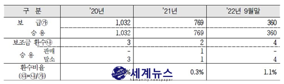 ▲ 최근 3년간 수소차 보조금 환수율. (기후환경본부 제공) |