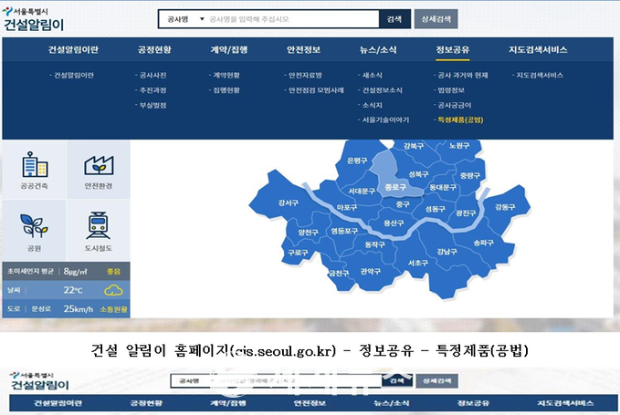 2017년부터 서울시가 운영하고 있는 ‘건설알림이(cis.seoul.go.kr) 특정제품(공법) 게시판’에 기업이 신기술과 특정제품(공법)을 등록하면 기업이 홍보용 자료(카탈로그)와 샘플을 직접 들고 관공서를 방문하지 않아도 특정제품(공법)선정심사위원회의 심사까지 한 번에 진행된다.