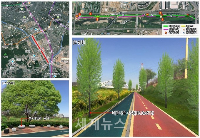 이에 따라 ▴산책로 및 자전거길에 그늘 휴식공간을 위한 가로수 450그루 식재 ▴훼손사면 정비를 위한 식생매트 설치 ▴서울시 가이드라인을 적용한 노후안내시설 정비 ▴그늘목 주변 벤치조성 및 휴게공간 설치 등으로 하천의 경관을 개선하고 주민 웰빙공간으로써의 기능을 강화하게 된다.
