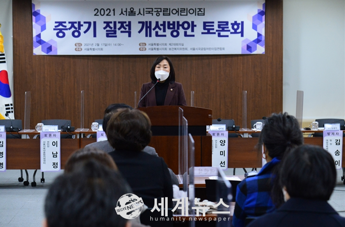 [세계뉴스 윤소라 기자] 서울시의회 보건복지위원회(위원장 이영실, 더불어민주당, 중랑1)와 서울시국공립어린이집연합회 공동주관으로 17일 서울시의회 제2대회의실에서 ‘2021 서울시국공립어린이집 중장기 질적 개선방안 토론회’가 열렸다.