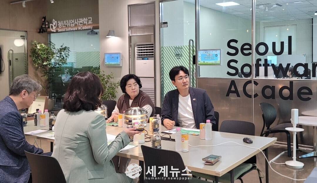 [세계뉴스 = 윤소라 기자] 서울시의회 서준오 의원(더불어민주당·노원4)은 공릉동 옛 북부법조단지에 위치한 서울시 청년취업사관학교 노원캠퍼스를 방문해 운영 현황을 점검하고, 관계자들과 간담회를 가졌다. 이날 방문에는 공릉동을 지역구로 둔 오금란 의원(더불어민주당·노원2)도 함께했다.