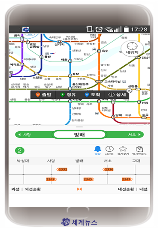 [세계뉴스] 조홍식 기자 = 서울교통공사(사장 김태호)는 앱을 이용해 도착역을 미리 설정해두면 도착 직전 푸시알람이나 진동으로 해당 역에 도착했음을 알려주는 ‘도착역 알림서비스’를 새롭게 출시했다.