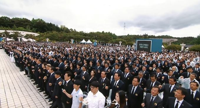 한편 제39주년 5·18 광주민주화운동 기념식에서는 '임을 위한 행진곡'이 합창에서 제창으로 불렀다. 문재인 대통령은 5.18 민주화운동 당시에 서울역에 있었던 것으로 전해졌다.