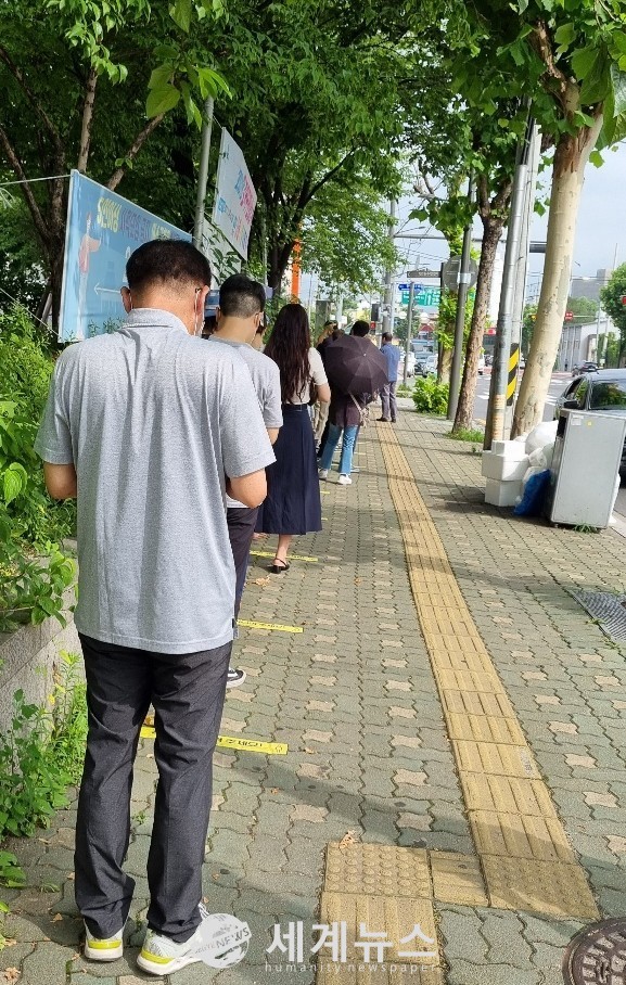 ▲ 코로나19 검사를 받기 위한 행렬이 늘어선 보건소 앞 모습. (사진=차성민 기자) |