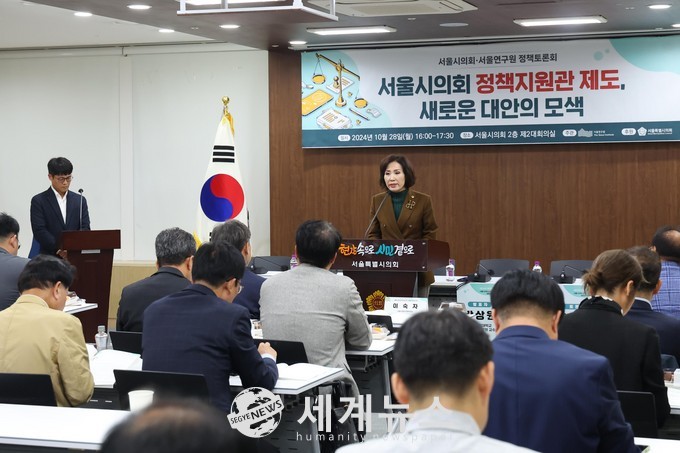 [세계뉴스 정서영 기자] 서울특별시의회와 서울연구원(오균 서울연구원장)이 주최한 ‘서울시의회 정책지원관 제도, 새로운 대안의 모색’ 정책토론회가 지방자치의 날을 하루 앞둔 28일 서울시의회 제2대회의실에서 열렸다.