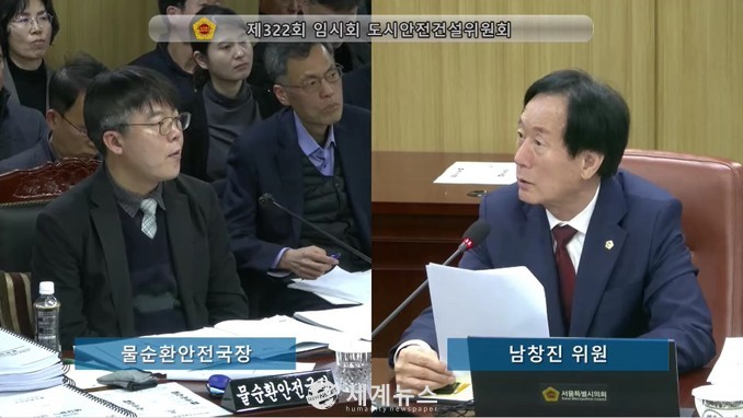 ▲ 남창진 서울시의원이 물순환안전국을 상대로 강남역 등 대심도 빗물배수터널 공사가 낮은 공사비 책정으로 2회 유찰된 것을 질타하며 침수지역 시민의 안전을 위해서 조속한 추진이 필요하다고 강조했다. |