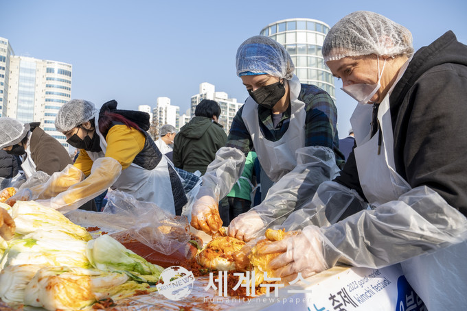 [세계뉴스 차성민 기자] 서울시농수산식품공사(사장 문영표)는 지난 15일 가락몰 3층 하늘공원에서 가락시장 공익법인 (사)희망나눔마켓(이사장 홍성호) 및 유통인과 시민 공동으로 ‘2023 가락시장 사랑의 김장 나눔 축제’를 개최하여, 김장을 담그고, 담근 김치를 독거노인 등 저소득층과 나누는 봉사활동을 가졌다.