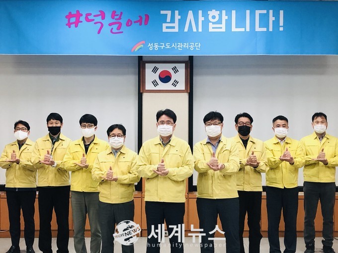 [세계뉴스 차성민 기자] 성동구도시관리공단(이사장 장기천, 이하‘공단’)이 27일 코로나19 감염증 환자 진료와 치료에 애쓰는 모든 의료진을 위한 릴레이 응원캠페인 ‘덕분에 챌린지’에 동참했다고 밝혔다.