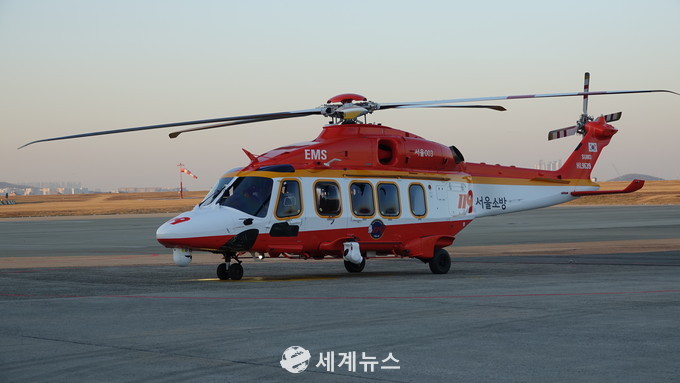 [세계뉴스] 조홍식 기자 = 서울시는 “야간 등 전천후 인명구조 활동이 가능한 중대형 다목적 소방헬기(AW-189)를 도입했다. 12일 오후 3시 김포공항 내 특수구조단 소방항공대에서 취항식을 갖고 본격 임무에 투입한다.